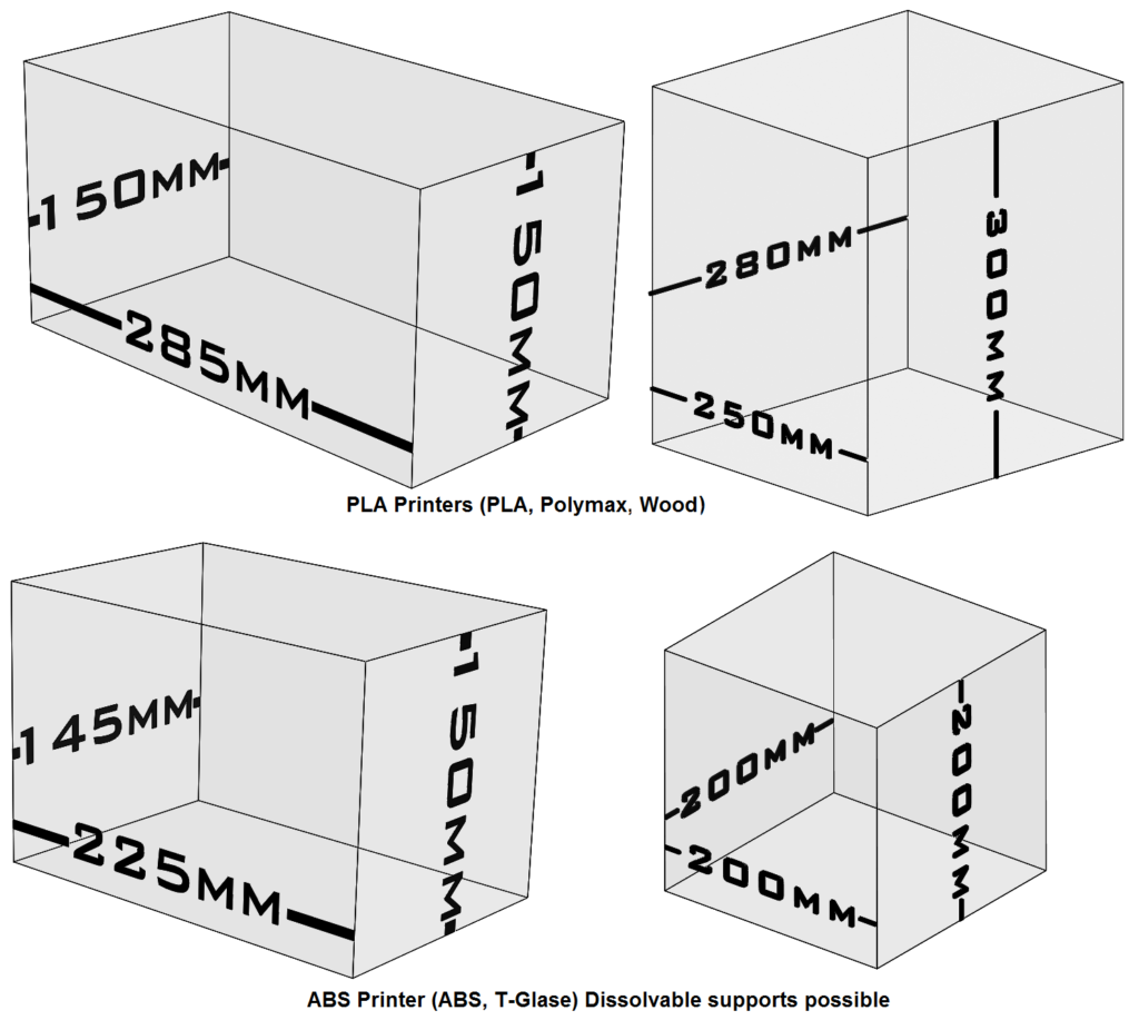 When printing with ABS, this introduces the additional factor of shrinkage. ABS prints will typically hold their dimensions very accurately until around 80mm after which parts will begin to suffer shrinkage as they cool down. This is typically in the range of 0-1.5% such that an ABS print 200mm long, could end up printing 197mm long. There are many factors that determine how much shrinkage an ABS print will suffer and certain geometries will hardly shrink at all. This can and will affect the tolerances, any large prints are always recommended to be done in PLA or polymax as they have very minimal shrinkage. If large ABS prints are required, I recommend doing them in ASA. It is more expensive, but shrinks less.
